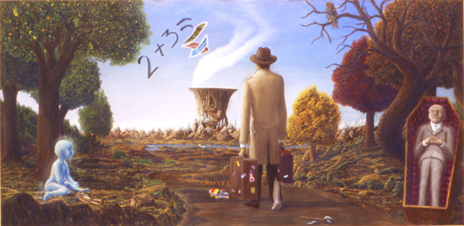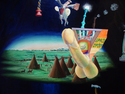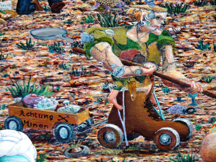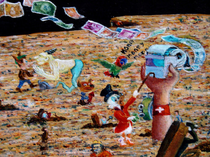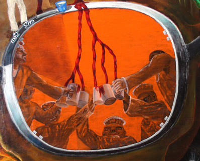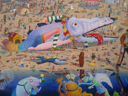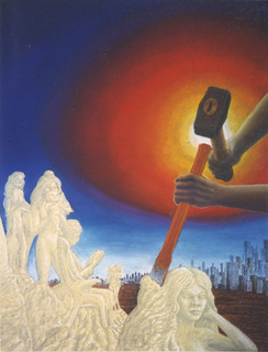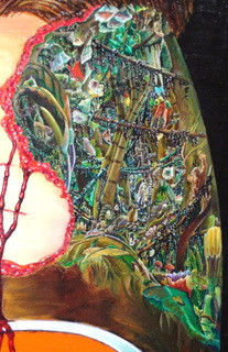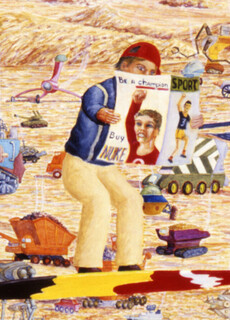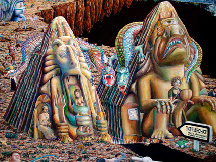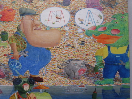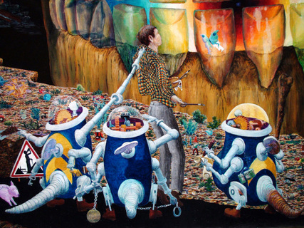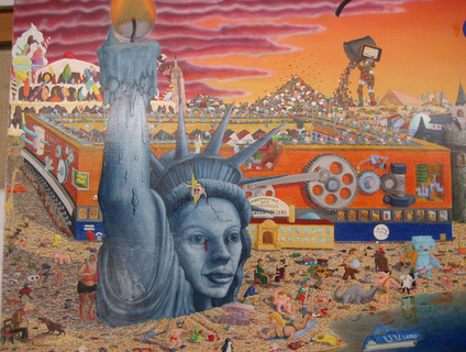 I symbolized the generosity of life with this pregnant woman, and all the rest is the way we destroy or the way we are taugth to be stupid consumers .